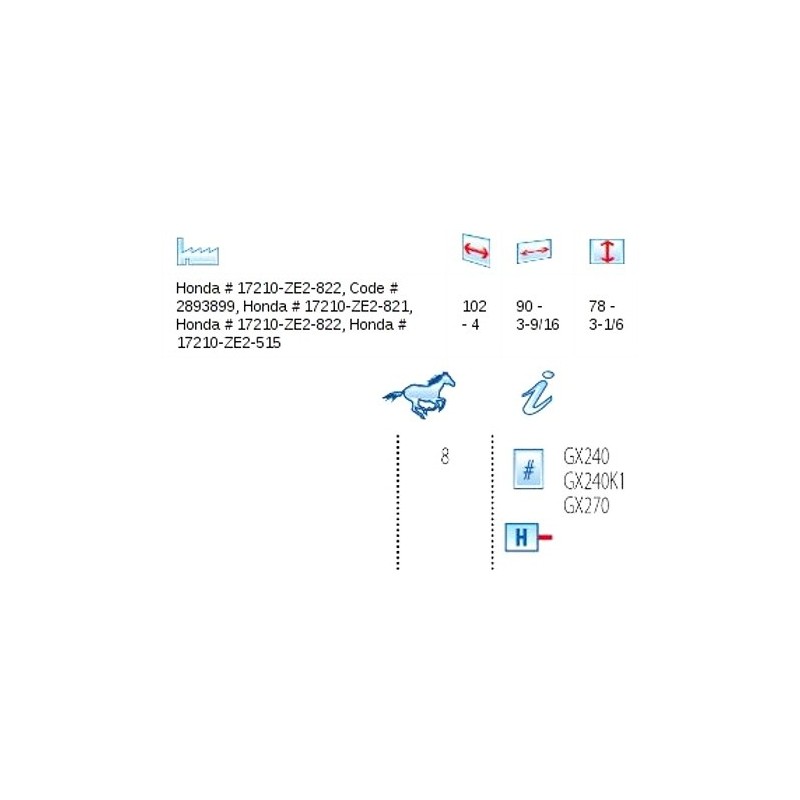 Honda - 17210-ZE2-505,17210-ZE2-515,17210-ZE2-822, 17210-ZE2-821,17210-ZE2-882OREGON - 30-406/ ROTARY - 6692