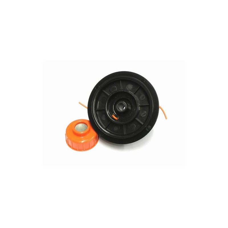 Model 2-żyłkowej głowicy z półautomatycznym podawaniem żyłki. Przystosowana do współpracy z większością małych wykaszarek spalinowych.