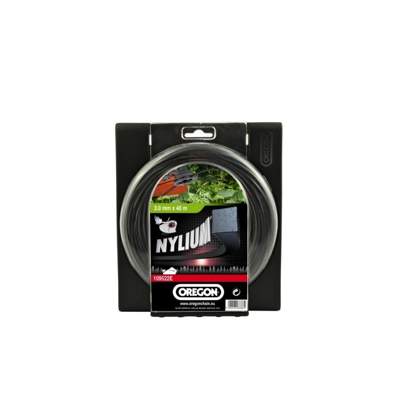 Żyłka tnąca Nylium® firmy OREGON z dodatkiem aluminium o profilu kwadratowym. Wymiary: 2.4 mm x 60 m.