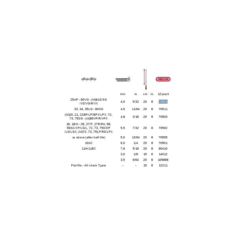 Pilnik okrągły, firmy OREGON do ostrzenia łańcuchów tnących 4.0 mm. Cena za szt.